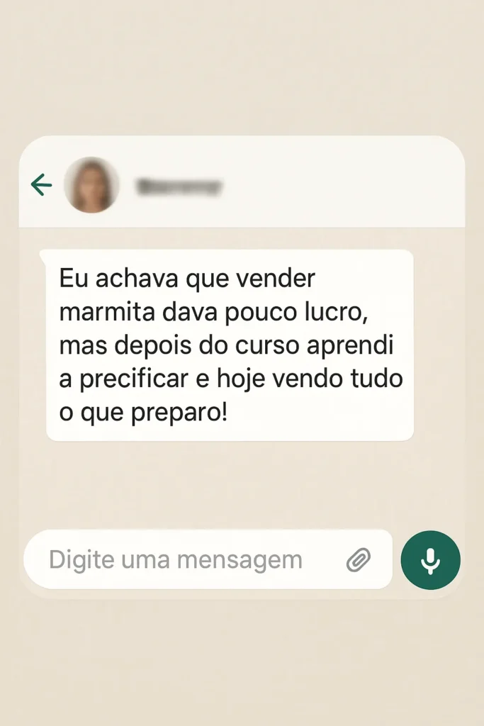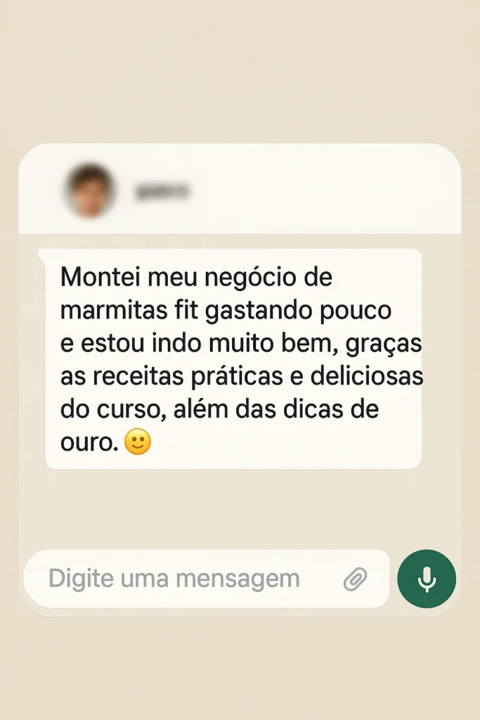Você vai aprender passo a passo, desde as receitas até como montar, precificar e vender suas marmitas com lucro.